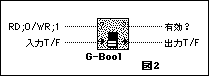 サブVI[G-Bool]は、[入力T/F]に"1"が入力されると、その後[RD;0/WR;1]に1が再入力されるまで[出力T/F]コネクタから連続して出力されます。