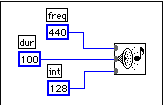 のBeep.viを関数/上級/Beep.viの順で選択し,frequency(周波数),duration(継続時間),intensity(音量)コネクタに図10